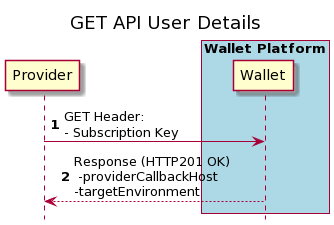 The Provider sends a GET {baseURL}/apiuser/{APIUser} request to Wallet platform.